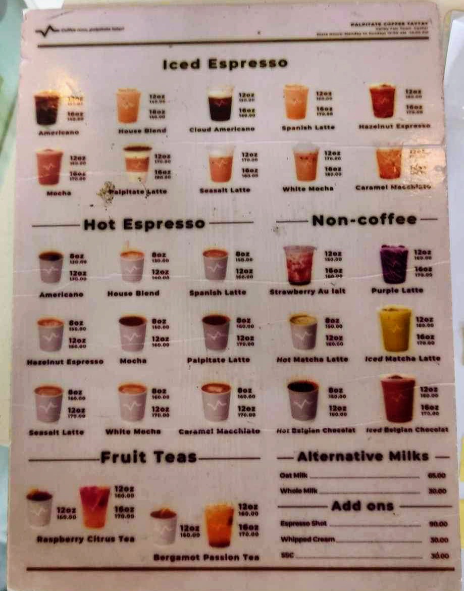 Customer reviews speak volumes about the experience offered at Palpitate. One patron, Baby Rhose Bayona, enthusiastically shared, "This was an excellent experience. The food, drinks, service, and setting were all perfect, and it was well worth the money." Another customer, Chery Verano, noted how refreshing the drinks and ambiance were on a hot day, although they humorously pointed out the unique layout requiring a step outside for service. It’s clear that guests appreciate the balance of quality beverages and a peaceful atmosphere, making it a perfect spot for both social gatherings and solitary retreats.