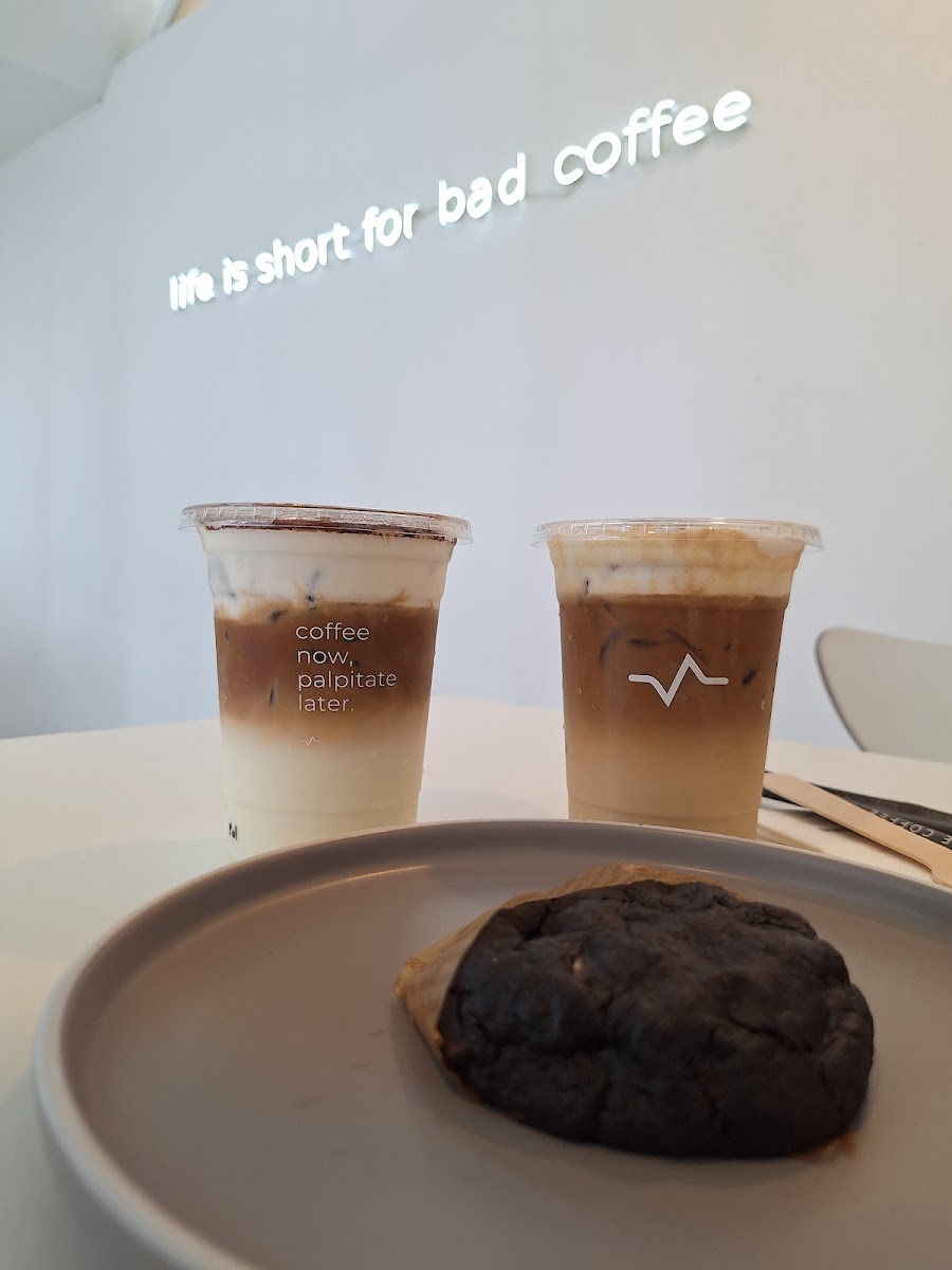 Palpitate’s menu boasts an array of delectable beverages that cater to every coffee lover's palate. Indulge in the Caramel Macchiato, an espresso-based drink enveloped in rich caramel syrup and whole milk, finished with a velvety foam—perfect served hot or iced for any time of the day. For a more adventurous twist, try the Seasalt Latte, a crowd favorite that marries the robust flavor of espresso with the delightful surprise of sea salt foam, all chilled to perfection. And if you’re in the mood for something sweeter, the Belgian Chocolate serves as the ultimate non-coffee refreshment, promising a deliciously cold embrace with every sip.